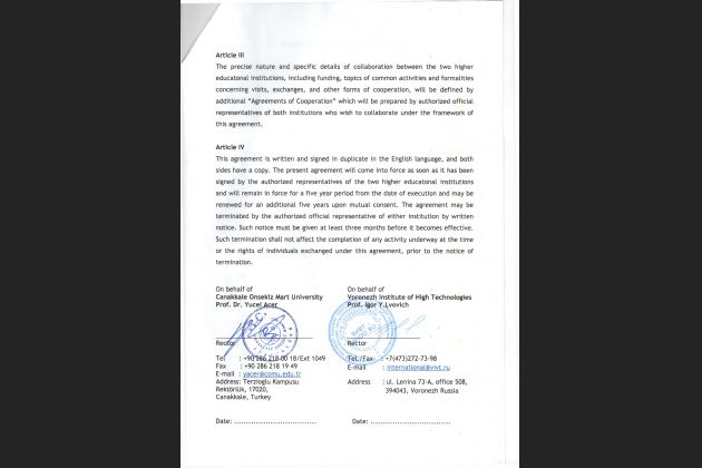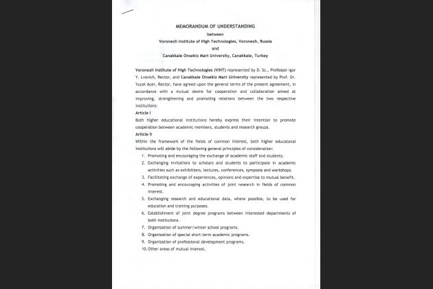 Воронежский институт высоких технологий подписал меморандум о сотрудничестве с турецким университетом Canakkale Onsekiz Mart University