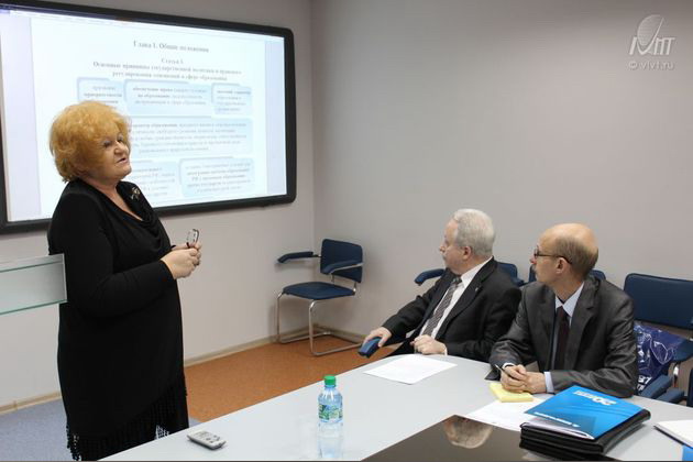 Чтобы разобраться в этих и еще ряде предстоящих нововведений, предусмотренных законом, ВИВТ организовал круглый стол, на котором в формате диалога обсуждались вопросы, требующие тщательного, детального рассмотрения совместно с экспертами в этой области. Специально по приглашению ВИВТ круглый стол посетила Ирина Ивановна Козубенко, д.и.н., профессор, член-корреспондент РАЕ, профессор МГУ им. М.В.Ломоносова, профессор МИОО. Одна из главных задач реформы по ее мнению – изменение самого подхода к образованию в целом. "Если раньше учили по принципу – "меня учат, я учусь", то теперь есть парадигма – "я учусь и меня направляют к обучению" – из выступления Ирины Ивановны.