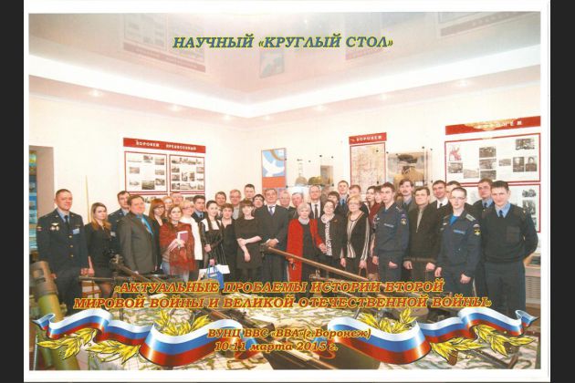 В ВУНЦ ВВС «Военно-воздушная академия имени профессора Н.Е. Жуковского и Ю.А. Гагарина» 10 марта 2015 г. состоялся научный «круглый стол» «Актуальные проблемы истории Второй мировой войны и Великой Отечественной войны». Проблемы истории обсуждали 8 докторов и 15 кандидатов наук из вузов Москвы, Воронежа и Российской академии наук.